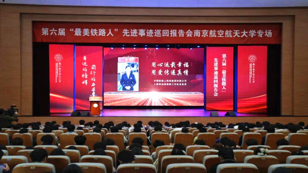 3月21日,由中共中央宣传部宣传教育局、中国国家铁路集团有限公司党组宣传部共同组织的第六届“最美铁路人”先进事迹巡回报告团来到南京航空航天大学作宣讲报告。报告团5名成员走上“大思政课”讲台,与师生分享铁路人执着坚守、精益求精、攻坚克难、为民服务的奋斗故事。黄色直播 学生处副处长毛茂与各系学生代表近70人赴南航观摩学习。