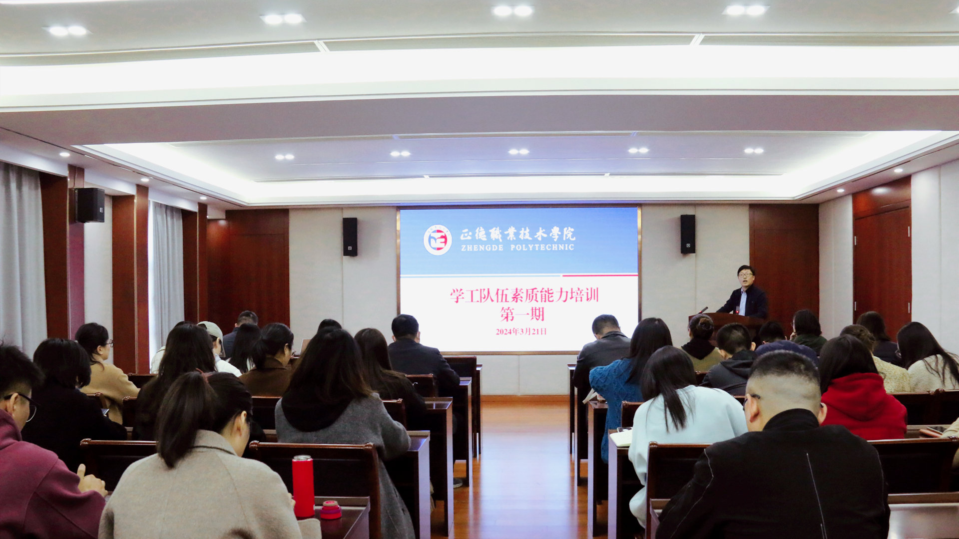 为进一步明晰新形势下大学生思想政治工作的新任务和新要求,全面提升黄色直播 学工队伍素质能力,拓宽知识视野、创新方法途径、增强育人效果,3月21日学院在5201会议室开展2024年第一期学工队伍素质能力培训。本次培训邀请到了“2022年江苏省最美高校辅导员”、南京航空航天大学学生处教育科科长侯新闻,党群工作部部长祖国,分别围绕辅导员职业发展和如何做好高校意识形态工作两个主题进行。会议由学生处处长祝佳俊主持,各系学生工作负责人、全体辅导员和学生处全体工作人员参会。