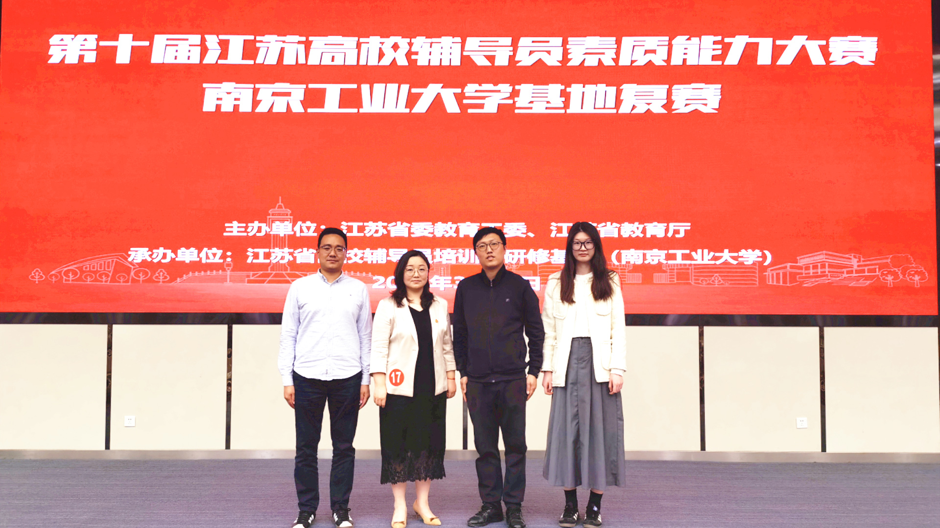 3月29-30日,第十届江苏高校辅导员素质能力大赛南京工业大学基地复赛成功举办。来自南京、泰州地区的17所高校辅导员参加复赛,经过激烈角逐,黄色直播 汽车与机电工程系辅导员丁烨荣获优胜奖。