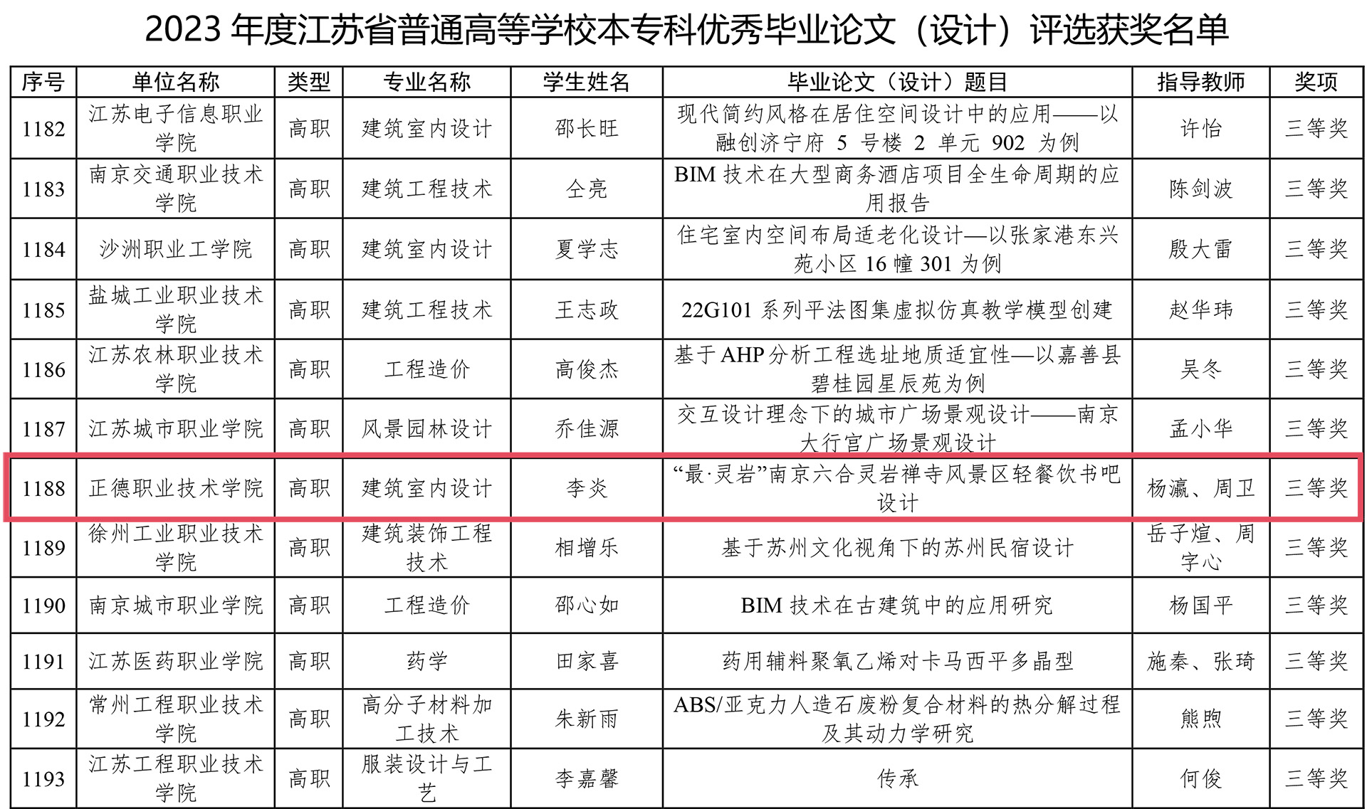 近日,江苏省教育厅对2023年江苏省普通高校本专科优秀毕业设计(论文)评选结果进行了公示,黄色直播 艺术设计与建筑工程系传来喜讯,2020级建筑室内设计专业的李炎同学作品《“最·灵岩”南京六合灵岩禅寺风景区轻餐饮书吧设计》荣获学生毕业设计三等奖。