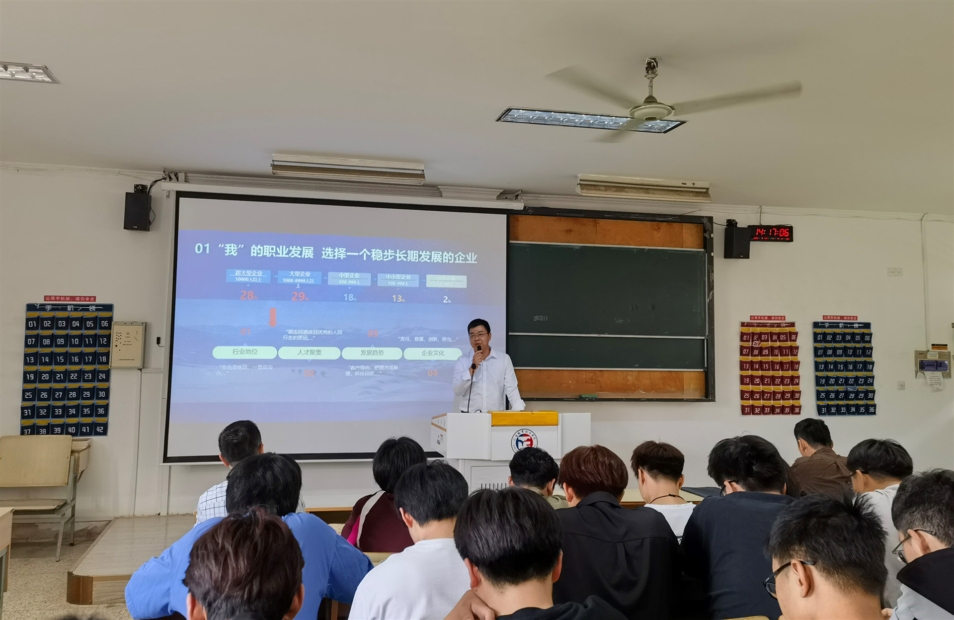 活动伊始,威派格研究院院长薛浩以自身职业发展历程为例,深入浅出地向同学们讲解了选择企业的标准和长远考量。他从“我们是谁”的角度出发,介绍了威派格“用心于水 绿色未来”的黄色直播和经营理念,展现出一个稳步发展、充满活力的企业形象。此外,薛浩还详细介绍了威派格的实习岗位种类和要求,帮助同学们更好地规划职业道路。