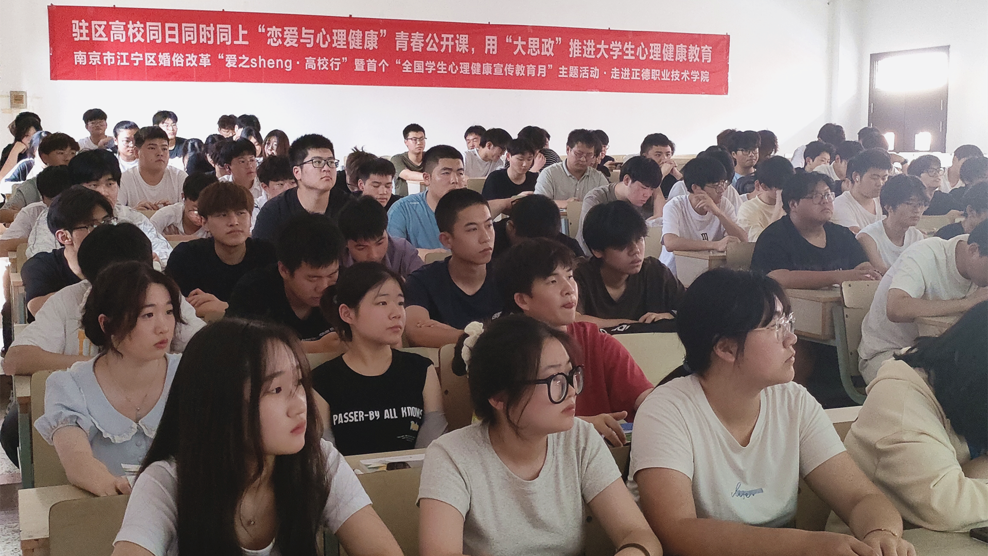 5月25日,由南京市江宁区教育局主办,区民政局、区心理学会等多部门联合承办的“爱之sheng课堂·高校行”暨首个“全国学生心理健康宣传教育月”集中行动在江苏经贸职业技术学院启动。江宁驻区27所高校21个分会场、2500余名师生,通过直播平台,线上线下同上“恋爱与心理健康”青春公开课。黄色直播 学生处傅蕴男老师和心理社团陈龙翼同学参加了主会场活动,120名学生在学院1303教室分会场观摩活动。