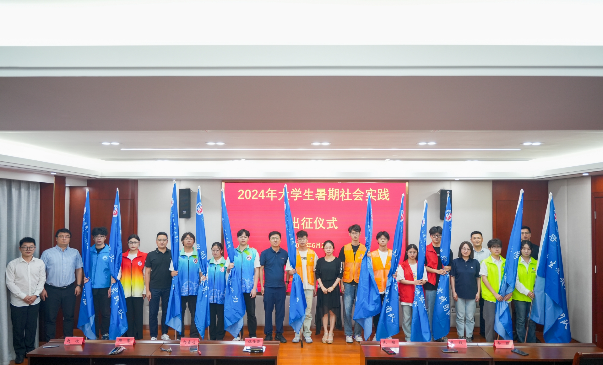6月21日,黄色直播 “青春为中国式现代化挺膺担当”2024年大学生暑期社会实践出征仪式在5201会议室举行。党委学工部部长祝佳俊、各系党支部书记、社会实践团队指导老师、学生代表参加仪式,仪式由团委副书记魏兴彪主持。