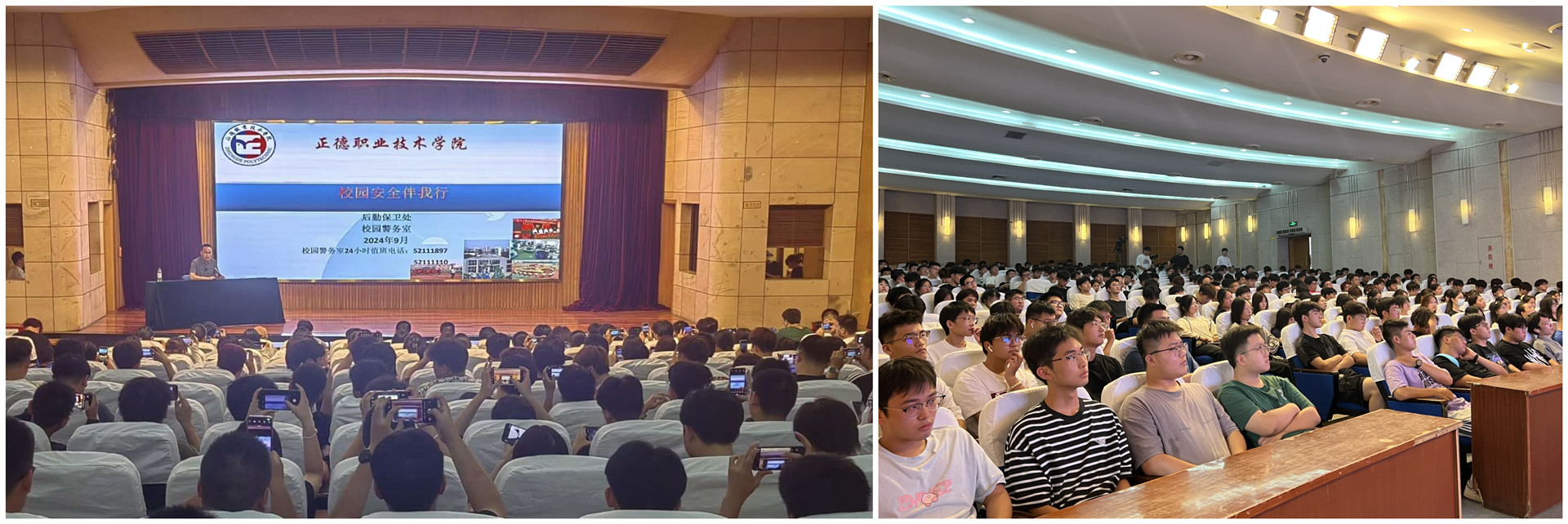 在报告厅,丁胜以其丰富的安全管理和保卫工作经验,从交通安全、消防安全、校园治安、户籍办理、校园技防等多个方面为2024级新生进行详细讲解。在交通安全部分,他提醒新生们要遵守交通规则,注意行人和车辆的安全;在消防安全部分,他讲解了火灾的预防措施和应急疏散知识;在校园治安部分,他强调了校园内的安全规定和防范措施;在户籍办理部分,他介绍了新生户籍迁移的流程和注意事项;在校园技防部分,他介绍了校园内装设的近500个安全监控和进出口完善的人脸识别系统等。
