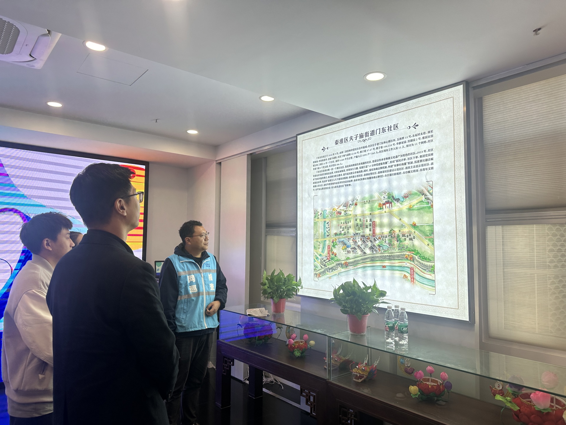 李薇首先带领大家参观了社区各功能区域建设情况和特色项目,对电子与信息技术系党支部赵欣一行表示热烈的欢迎。期间,李薇介绍了夫子庙街道门东社区的基本情况与特色服务,并就社区发展方向等作了详细的介绍。