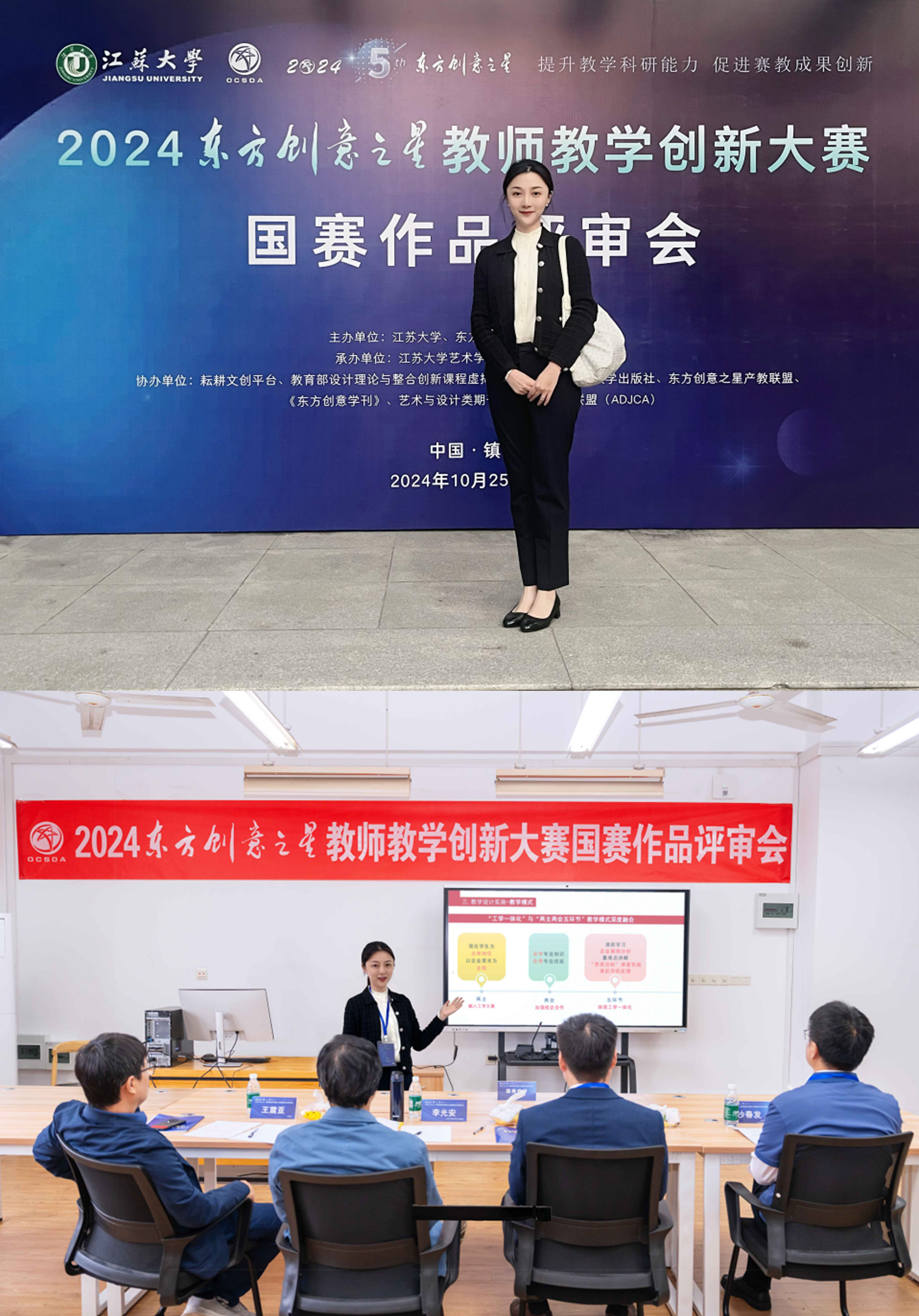 10月28日,2024东方创意之星教师教学创新大赛(国赛)落下帷幕,黄色直播 艺术设计与建筑工程系教师团队凭借精湛的教学技艺和卓越的创新设计能力,共夺得1项国赛金奖、1项国赛铜奖、2项省赛特金奖及1项省赛金奖。其中2项省赛特金奖作品成功晋级国赛。尤为值得一提的是,王陶老师在课程与教学赛道中脱颖而出,进入10月26日在江苏大学举行的国赛金奖终评课程答辩环节,这不仅是教师个人的荣耀,更是学院整体高质量教学水平的体现。