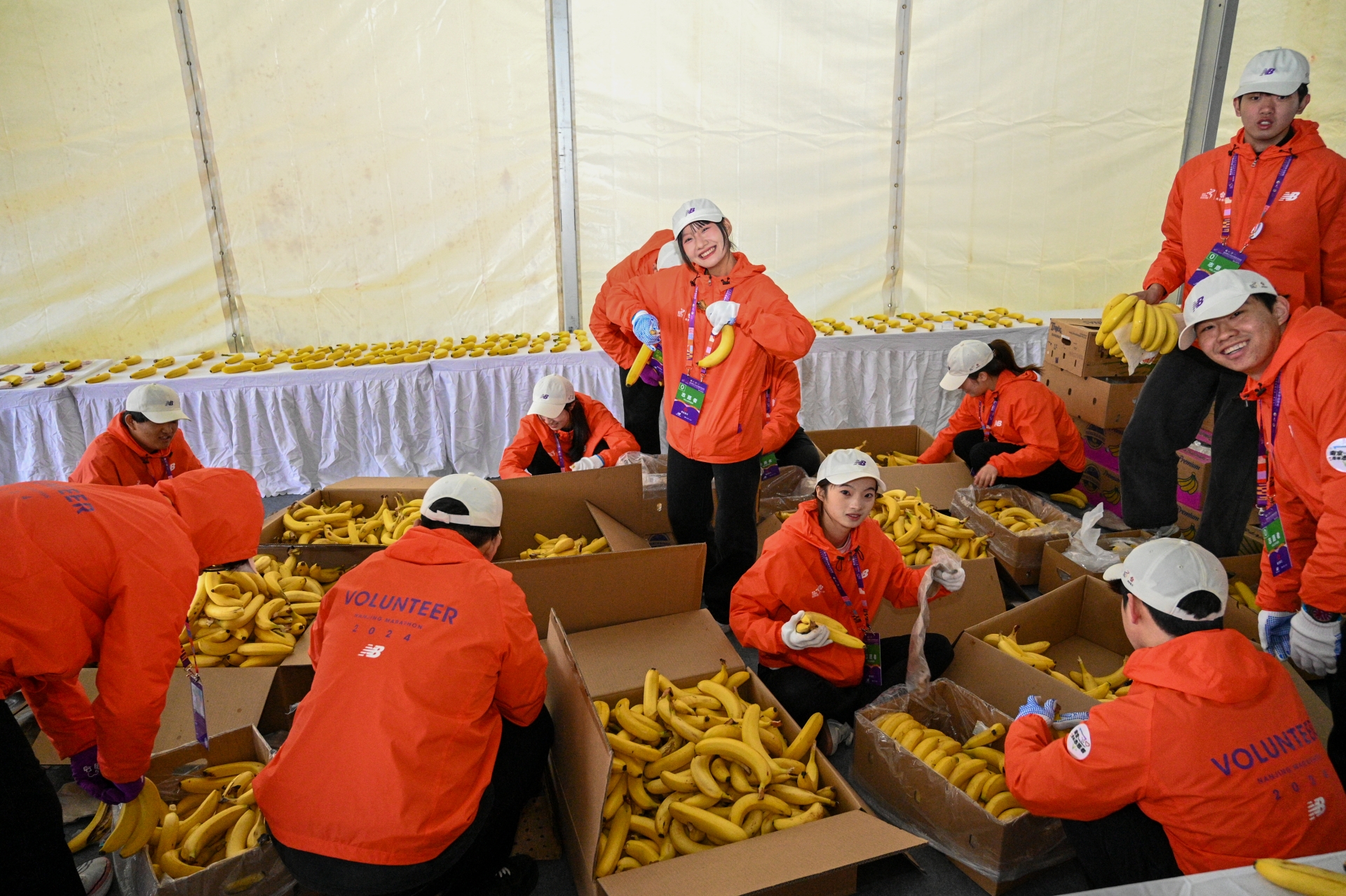 比赛当日,全程终点处的志愿者们向参赛选手提供温暖贴心的服务。“当参赛选手顺利从我们手上接过物资表达感谢的时候,真的非常感动!”在场的志愿者们激动地说。