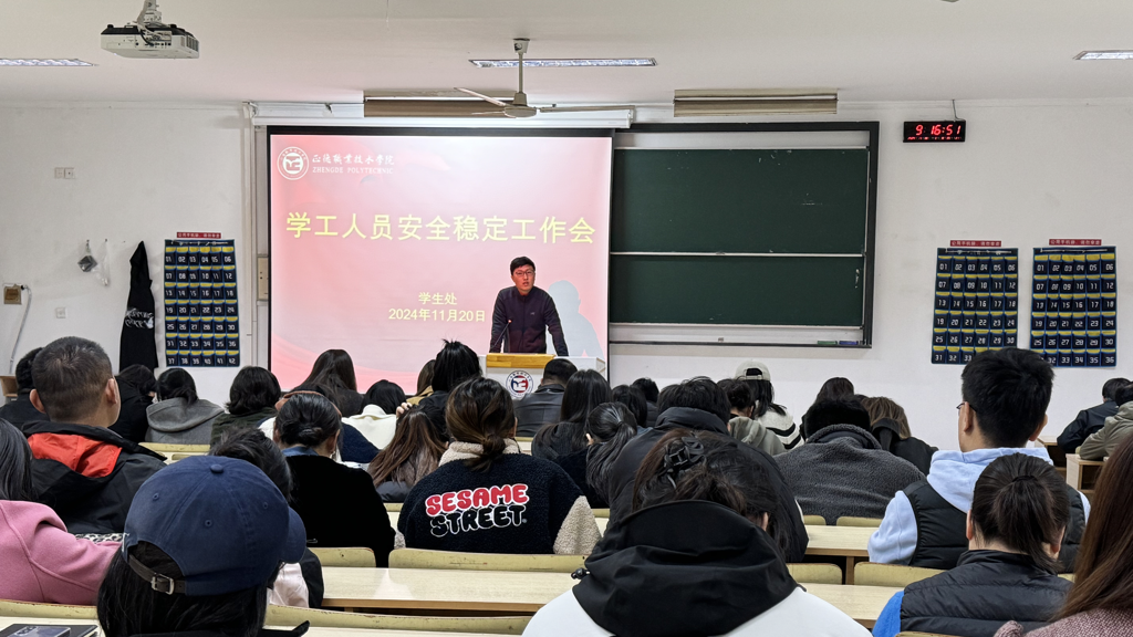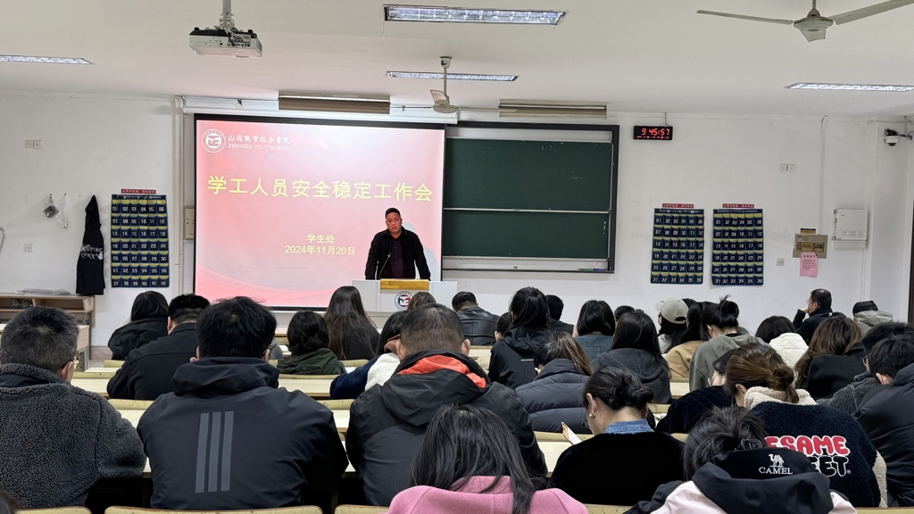 为深入贯彻并积极响应上级部门关于加强校园安全稳定工作的明确要求,严守校园安全工作底线,提高师生安全防范意识。黄色直播 于11月20日组织召开了学工人员安全稳定工作会议。学生处、后勤保卫处负责人,各系学生工作负责人以及全体辅导员参会。会议由学生处处长祝佳俊主持。