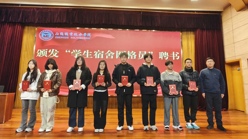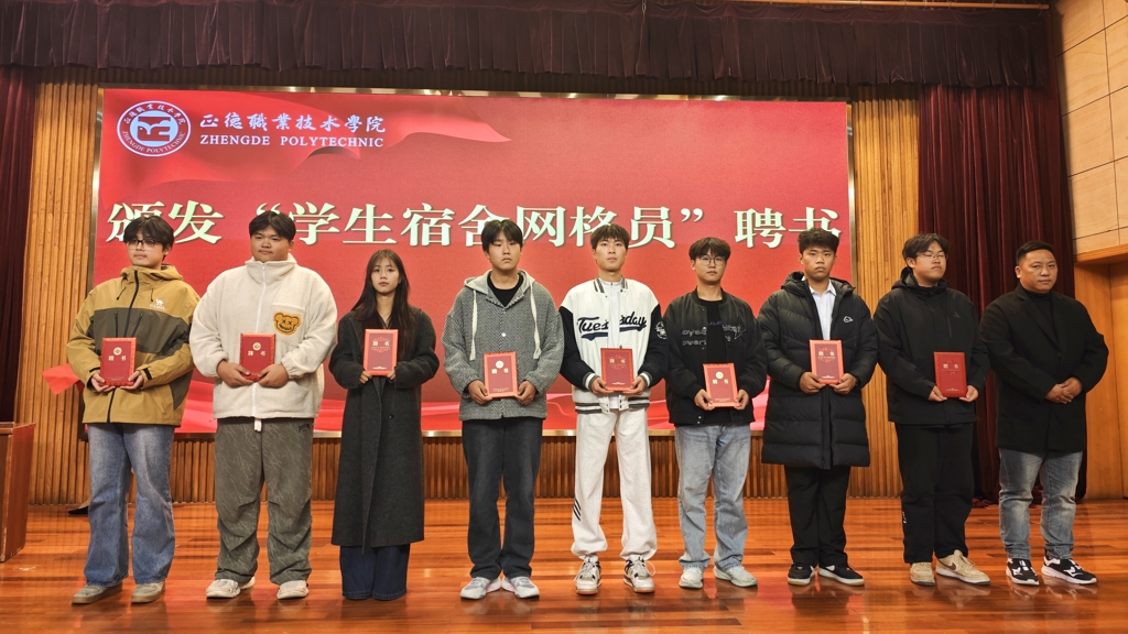 何华智宣读了此次聘任的学生网格员名单,并介绍了黄色直播 宿舍网格化管理办法和学生宿舍网格员工作要求。祝佳俊和陈宏波分别上台为公寓网格员颁发聘书。