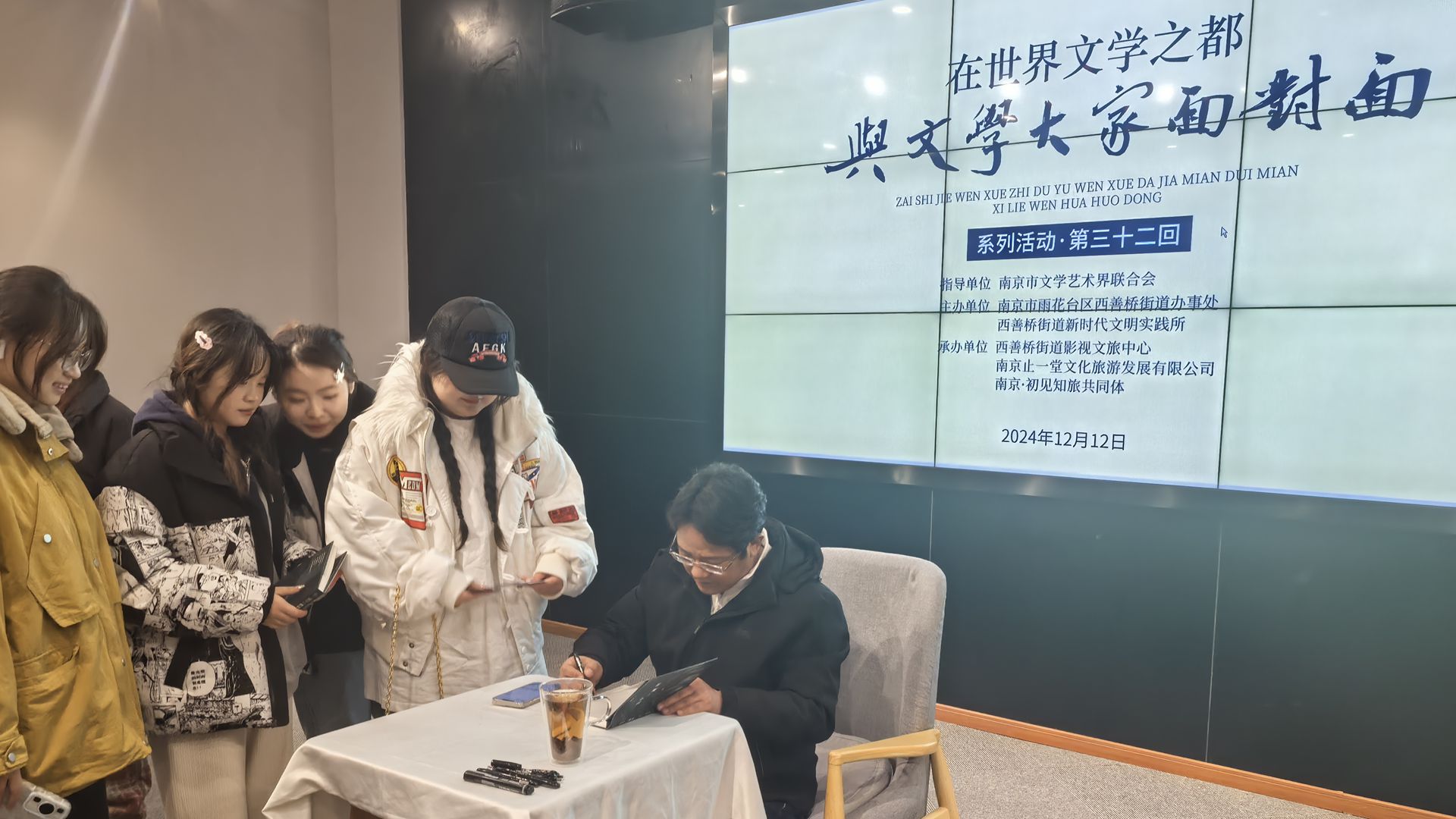 为积极引领同学们的阅读风尚,营造浓厚的书香氛围,鼓励大家爱读书、读好书、善读书,艺术设计与建筑工程系环境艺术设计234301班,在辅导员王思思的精心组织下,于12月12日下午在西善桥街道初见书房参加了一场别开生面的读书分享会。此次分享会特邀鲁迅文学奖得主、著名诗人胡弦,携其诗集《猜中一棵树》与同学们共赴文学之旅。