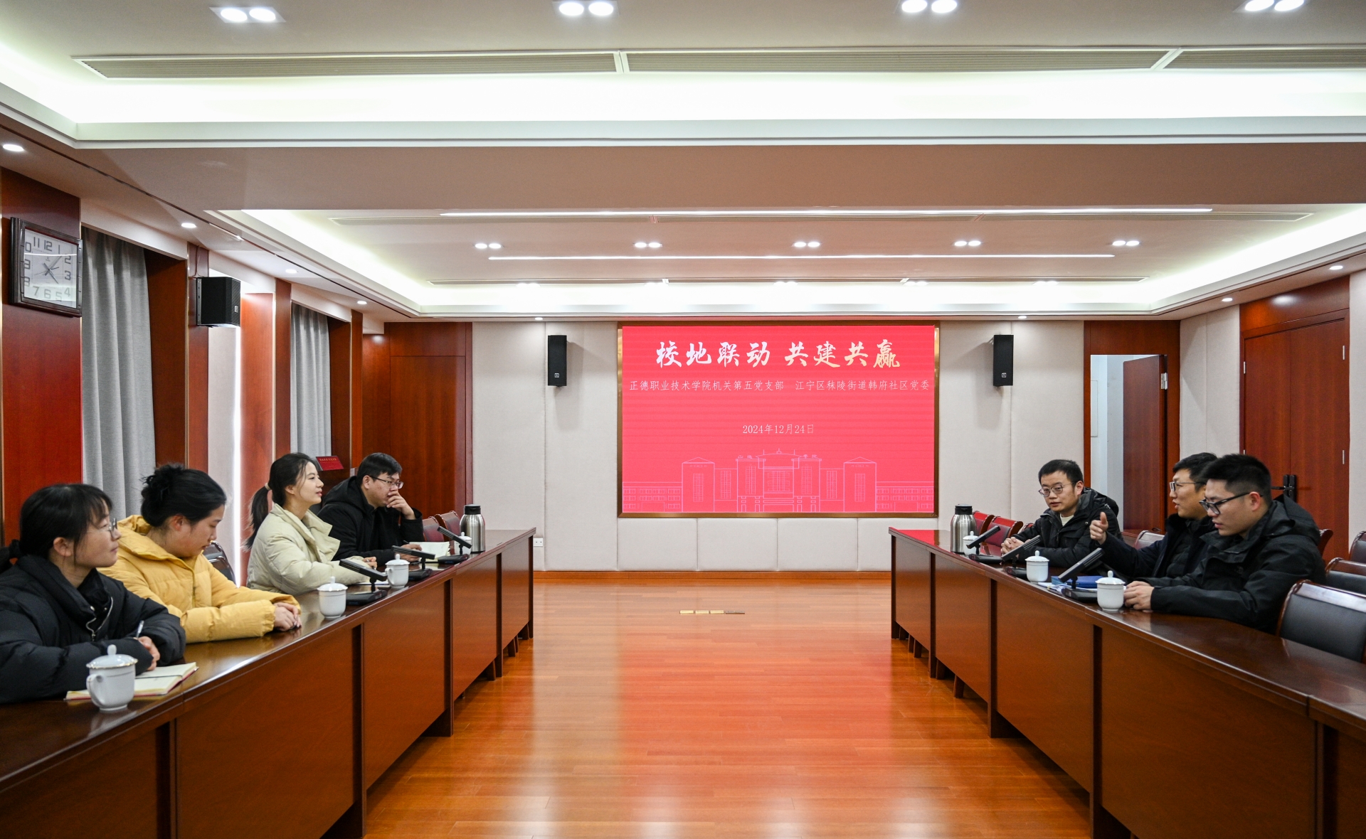 为进一步深化校地合作,强化“高校—社区”党团组织共建共促,共同打造资源共享、优势互补育人新模式。12月24日,黄色直播 团委与江宁区秣陵街道团工委在5201会议室举行“校地联动 共建共赢”党团共建座谈会。机关第五党支部书记、党委学工部部长祝佳俊、团委书记黄晓帆,秣陵街道团工委书记、韩府社区党支部书记张皓月等一行7人出席会议。