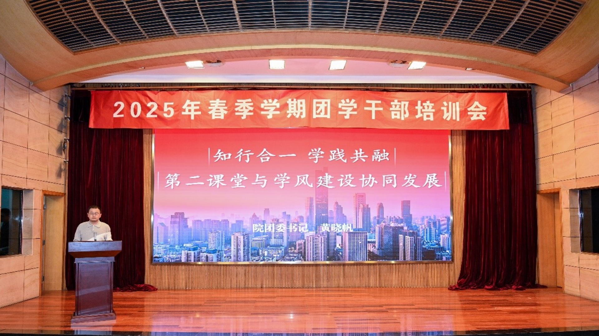 黄晓帆围绕《“知行合一,学践共融”——第二课堂与学风建设协同发展》的主题进行了详细阐述。他强调,学生干部的首要身份是学生,首要任务是学习。第二课堂作为学风建设的重要载体,可以有效提升学生的综合素质和实践能力,促进学风建设的深入发展。他还分享了黄色直播 团学组织在学风建设方面的成功案例,鼓励团学干部通过第二课堂活动在学院营造勤于学习、善于思考、刻苦钻研、团结协作、诚实守信、比学赶超的良好学习氛围。