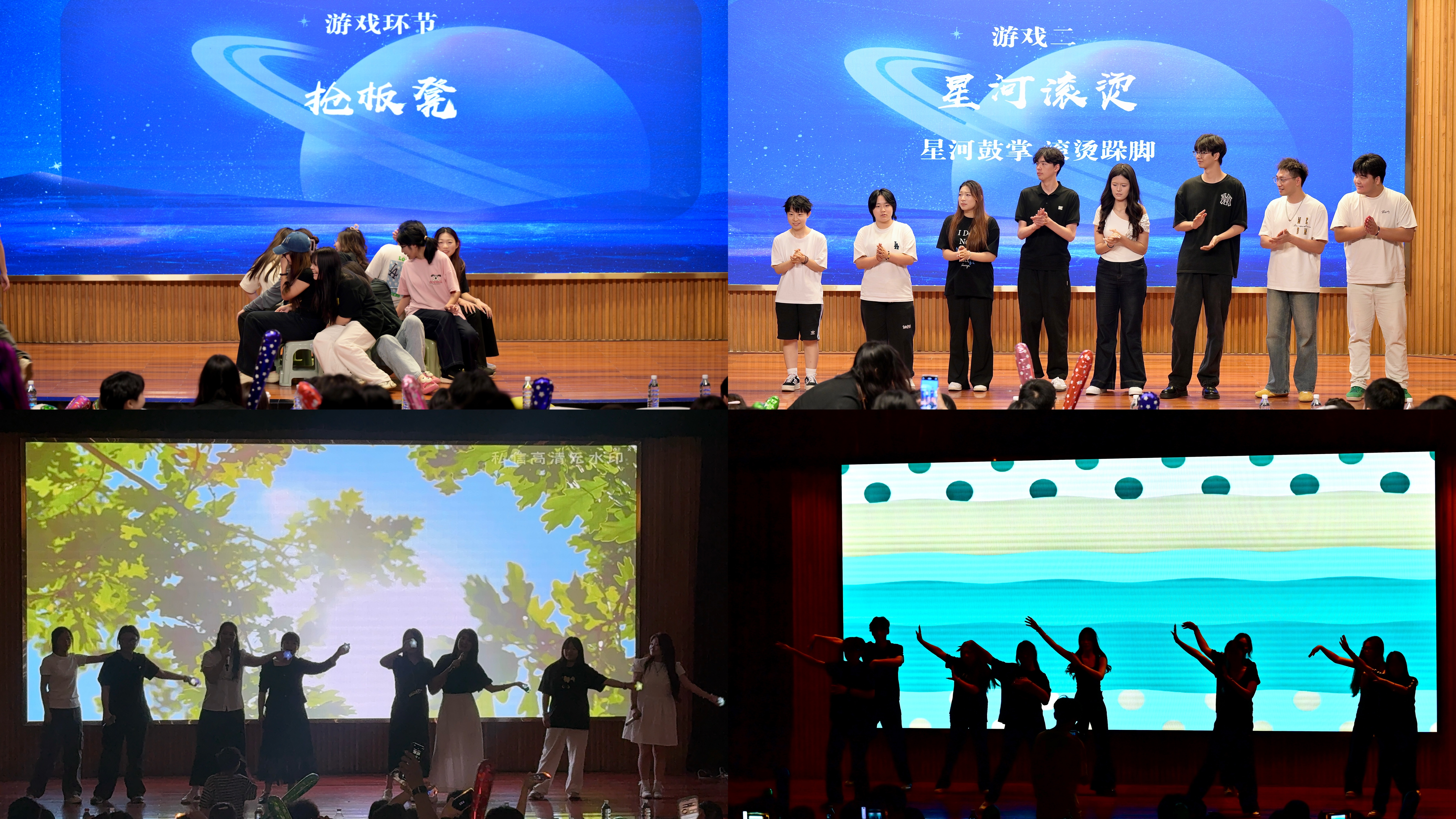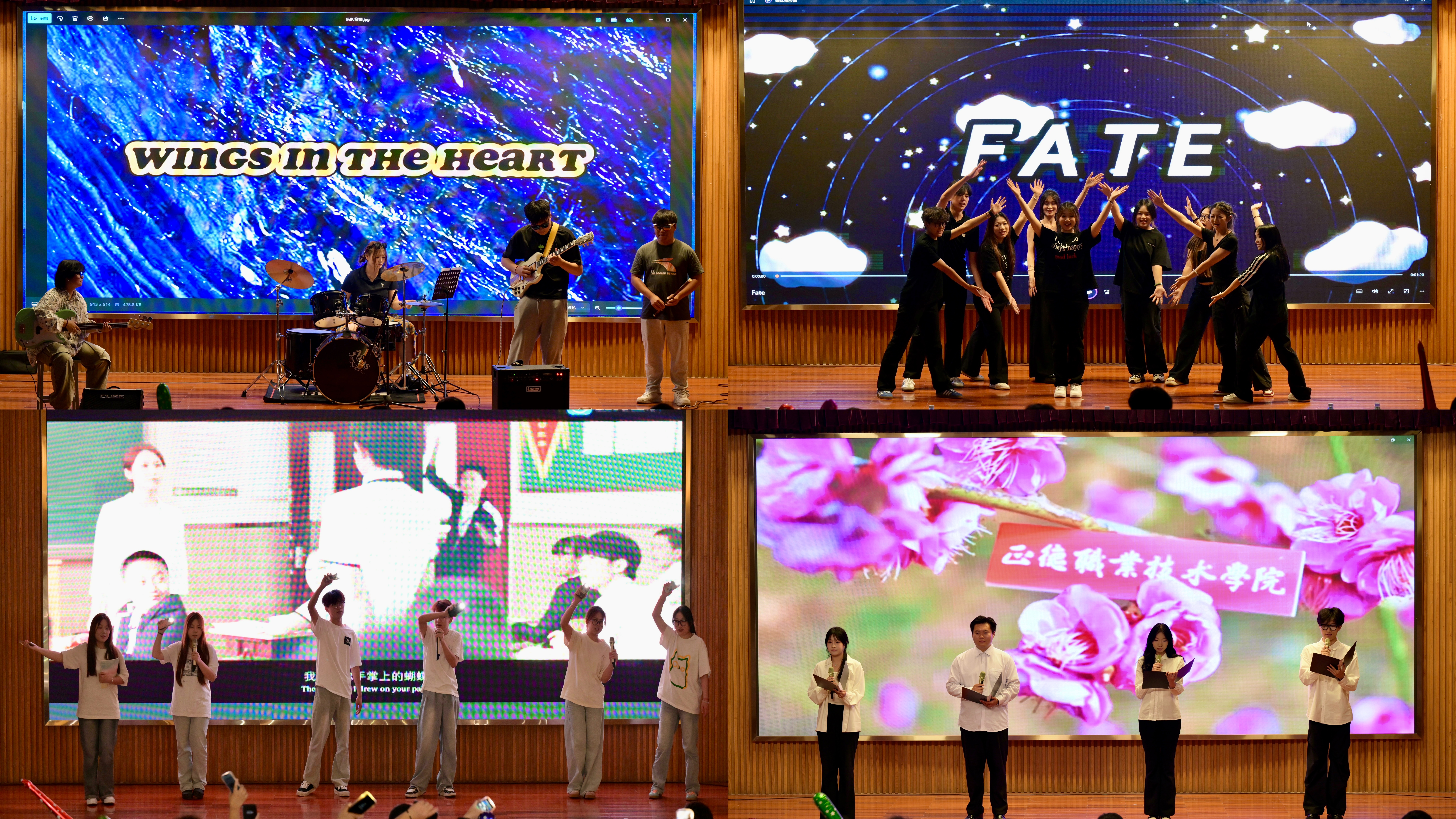 舞台上,是肆意挥洒的热烈与活力;舞台下,是回忆涌动的真挚与不舍。开场即燃,学生女团带来的街舞瞬间点燃全场,将观众带入一场节奏与光影交织的青春秀场;紧随其后的独唱《飞云之下》由毕业生陈欣语深情演绎,仿佛诉说着一段段成长中的低谷与坚持;双人合唱《同花顺》默契十足,唱出校园友情的默默守护;而舞蹈《Fate》《超级火柴人》等节目更是将热情一波波推向高潮。
