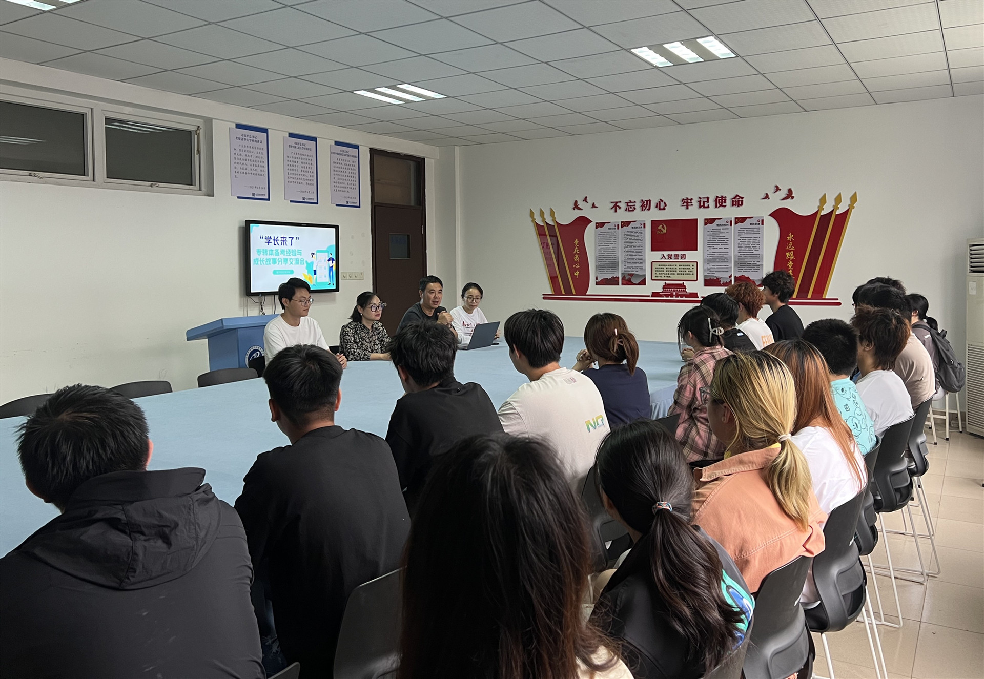为充分发挥优秀校友的示范引领作用,帮助2024级学生掌握专转本备考策略,明晰职业发展路径,6月11日,电子与信息技术系成功举办“学长来了”专转本备考经验与成长故事分享交流会。本次活动特邀2022届优秀毕业生班浩轩担任主讲嘉宾,电子与信息技术系2024级辅导员刘敏婧、李兰香,班主任孙军辉,2024级学生代表参与活动,会议由孙军辉主持。