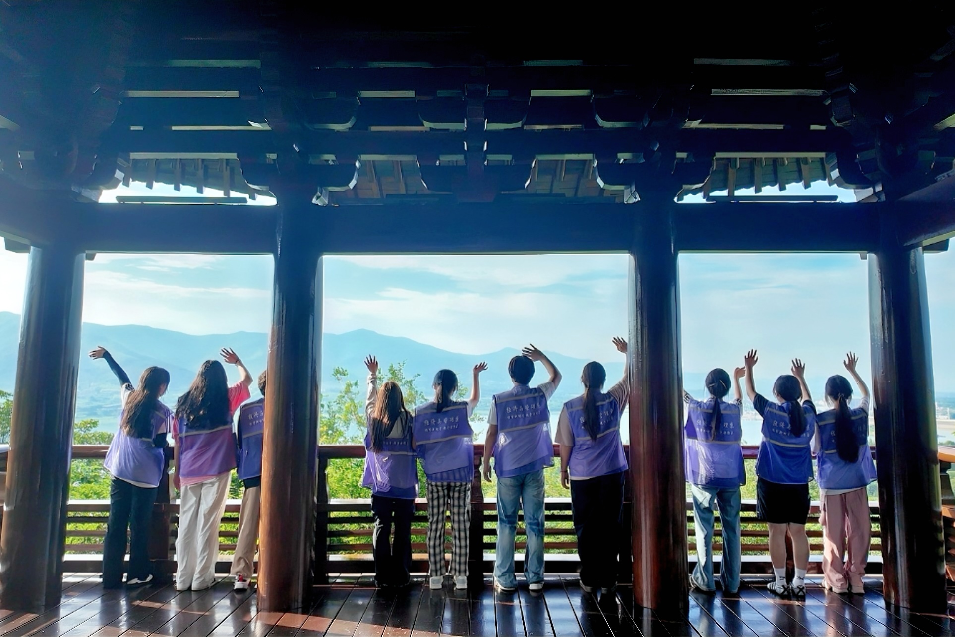 在实践活动的最后,团队们登东坡阁远眺山水,俯瞰紫砂文化腹地。层峦叠嶂的山脉、连绵不绝的黛瓦、一座座被年轻人重新点亮的老厂房,仿佛在向他们诉说一段段岁月与匠心的故事。山风拂面,目光所及,是历史与现实的对话,是传统与创新的融合,文化传承的种子也在成员们在心中悄然发芽。周慧表示,带领学生们走进社会、走入历史、走近群众,在亲历、亲研、亲讲中将专业知识与工匠精神深度融合,是一堂浸润人心、启智润德的美育课和思政课。