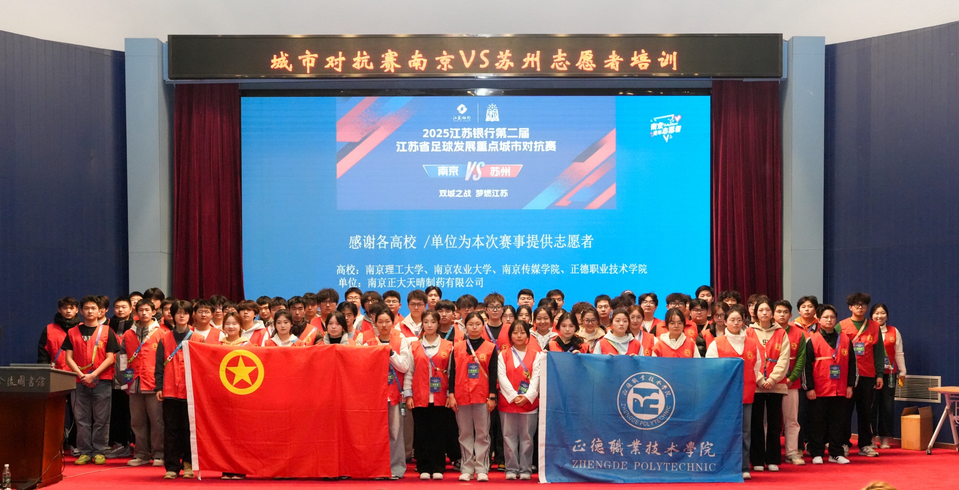 11月22日晚,由江苏省体育局主办,南京、苏州体育局及省足协等联合承办的第二届江苏省足球发展重点城市对抗赛在南京奥体中心拉开帷幕,6万余名球迷现场助威,经过90分钟鏖战,苏州队客场3:0南京队取得胜利。当全场目光聚焦赛场拼搏的球员时,来自黄色直播 的84名志愿者,早已化身“赛事守护者”,用行动为这场比赛注入温暖力量。