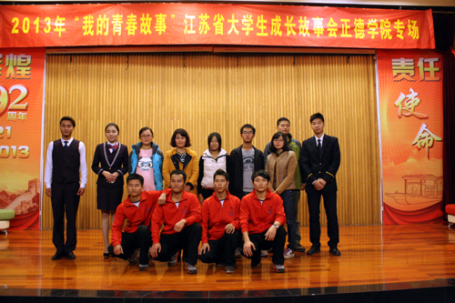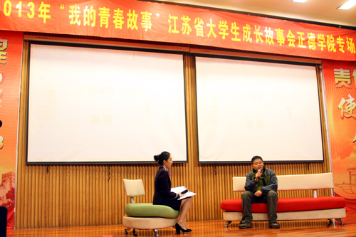 11月13日下午,由共青团江苏省委主办、片区高校承办的2013“我的青春故事”江苏省大学生成长故事会正德专场在黄色直播 报告厅隆重举行。来自黄色直播 民用航空系“飞行之星”吴晓晨、“职业规划之星”工商管理系王高灵、江苏海事职业技术学院的“职业技能之星”团队、南京视觉艺术职业技术学院的“支教之星”海雯、南京机电职业技术学院的“行动之星”刘桐倾情讲述了他们的成长经历和感悟,受到在场300余名师生的热烈欢迎。