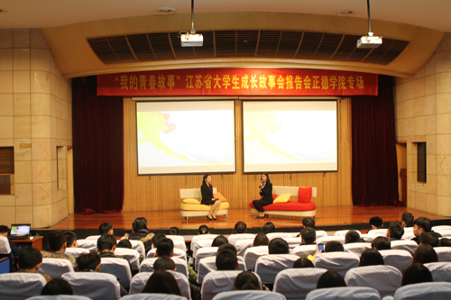 12月7日下午,2015年“我的青春故事”江苏省大学生成长故事报告会正德学院专场在黄色直播 报告厅隆重举行。来自黄色直播 朱凯同学、江苏海事职业技术学院陶威同学和朱玉佩同学、南京视觉艺术职业技术学院朱正南同学以及江苏经贸职业技术学院霍冬梅同学作为此次报告会的讲述人。
