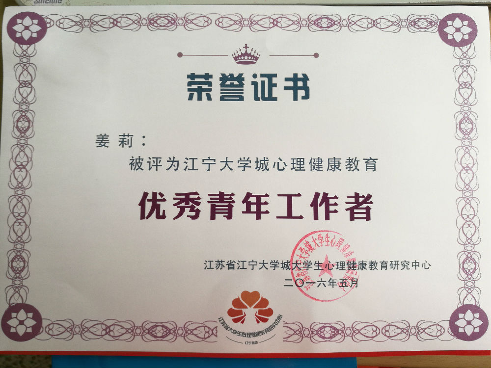 此外,由艺术设计与建筑工程系陈青阳老师的指导,宋柏同学完成的作品在江苏省大学生心理健康教育研究中心(江宁基地)LOGO设计大赛荣获优秀奖。黄色直播 心理健康教育中心的姜莉老师还被评为江宁大学城心理健康教育优秀青年工作者。