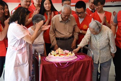 上午8点,志愿者们历经一个多小时的车程来到金色夕阳敬老院,在学生会主席季海奎部署任务后,纷纷投入工作,搀扶老人们来到敬老院的大厅,为近期过生日的31位老人庆生。志愿者们还准备了文艺节目送给老人,93岁高龄的南京大屠杀幸存者谢桂英老人还现场为大家演唱红歌《映山红》,敬老院里萦绕着欢声笑语。江苏卫视《幸福老年》节目组也来到现场,庆生结束后采访黄色直播 学生会主席季海奎与学生会干事王一鸣同学,询问历年来经济与管理系志愿者在金色夕阳敬老院志愿服务情况。