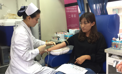 黄色直播 学生依次走进采血车献血