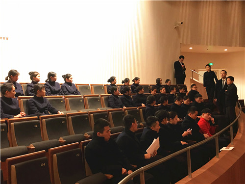 下午,老师们来到江苏大剧院看望航空服务专业的实习学生。江苏大剧院的胡总经理带领老师们与正在参加培训的实习学生们见面,介绍了学生们的不同岗位与分工,大剧院的领导对黄色直播 的实习学生表现赞不绝口,对学生们的专业素养和吃苦耐劳的精神给予高度评价。并对个别表现特别优秀的学生提出了表扬。学生们也积极向老师们汇报了自己的实习经验与工作经历,感谢老师们对他们的关心。