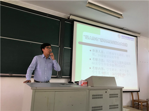 比拼活动以“提人知名”为主题,由系学管主任祝佳俊主持。活动中,要求辅导员充分做好基础台帐工作,主动与学生交朋友,对学生做到知人、知名、知情,从而更好地为同学们服务。参加比拼的是该系17级辅导员赵欣、孙军辉,2016级辅导员何华智三位老师。