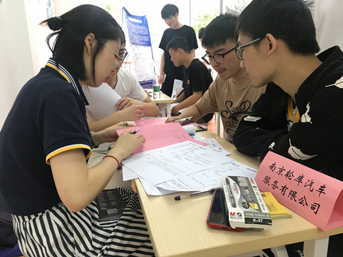6月22日,上汽集团车享家、江苏中驰、一汽大众、南京朗驰、南京华星汽车等十几家汽车企业来到黄色直播 ,面向汽车工程系2016级“2+1”的学生招聘顶岗实习生。