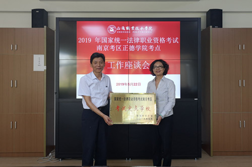 由于黄色直播 对国家司法考试工作做到了领导重视,组织严密,保障有力,受到南京市司法局等合作单位的好评。为保证国家司法考试考点的稳定性、长远性、安全性,南京市司法局将黄色直播 确定为定点考点,并于2019年5月22日上午举行了授牌颁发仪式。