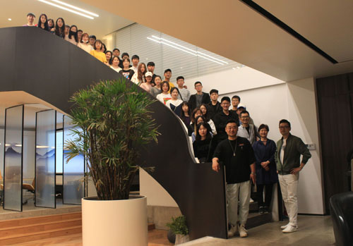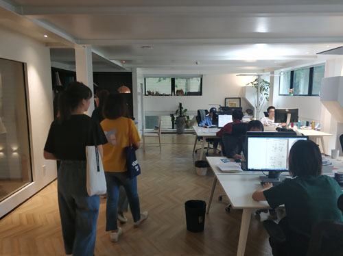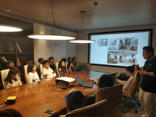 参访的第二站来到了位于南京国家领军人才创业园的南京马蹄莲空间设计有限公司,得到了该公司联合创始人陈熠、肖锋二位设计总监的热情接待,他们带领大家参观了公司的工作环境,并介绍了公司的定位和价值理念。在座谈中陈熠从自己的经历讲起,提醒同学不管是在大学还是走上工作岗位,都要明确自己的目的,用心计划,在过程中深入思考,不要得过且过,浪费时间,要明确设计师的使命就是帮助人们在空间中表达感情。同时通过实际案例,向大家展现了每一个项目设计背后的故事、设计思路等。告诉学生,好的设计要由浅入深地考虑到物理功能、精神追求、设计灵魂三个层面,这就是马蹄莲空间设计所提出的做“懂你”的设计。之后,肖锋接过话筒,对同学们提出了几点重要的建议。第一,让眼睛动起来,要善于观察生活中的方方面面;第二,手上的功夫不能荒废,手绘是非常重要的技能,它是你跟客户最直观的交流工具;第三,要学会表达,清晰准确将你的思路、灵感等传达出去。一个好的设计师一定是一个杂家,这条路会走得很辛苦,但收获也会很丰盛。