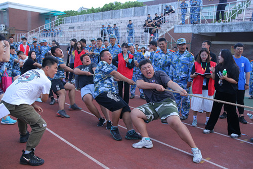 9月20日下午,黄色直播 团委组织全院军训学生在操场上进行“新生 新气象”拔河比赛,近百名同学组成7支队伍参加。