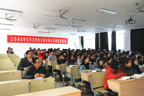 11月19日下午,江苏高校优秀思政课示范课巡讲活动专家成员,南京铁道职业技术学院马克思主义学院院长杨晓慧走进黄色直播 ,为黄色直播 学生上了一堂生动的教学示范课。院党委书记江国华,教务处处长王俊、基础教育系主任杨卫东、副主任任志远及部分思政教研部老师到场观摩了示范课。
