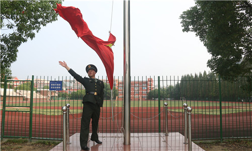 在庄严的国歌声中,五星红旗冉冉升起,全体人员面向国旗肃立,行注目礼。在宪法晨读活动中,院学生会主席卞鑫莉领读,在场同学跟读《中华人民共和国宪法》部分条款内容。