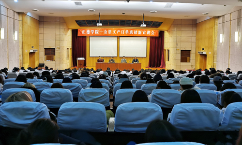 钱金龙团长首先向在场的同学们介绍了成立订单班的初衷,回顾了订单班成立以来所参加的重大活动和取得的成绩;2019级金箔舞蹈订单班优秀学生代表张洁作了发言,和同学们分享了自己成长的经历和体会。