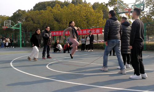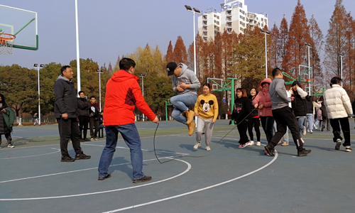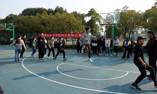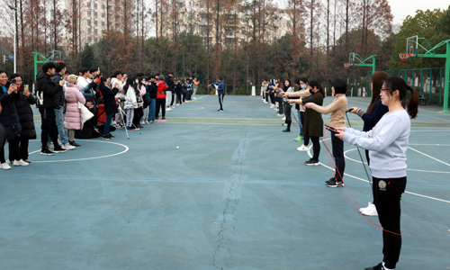 12月23日中午,由基础教育系携手工会、团委共同举办的“绳彩飞扬”黄色直播 师生跳绳挑战赛在室外篮球场火热开赛,来自学院各系和各工会小组的同学、老师们现场挑战,一争高下。