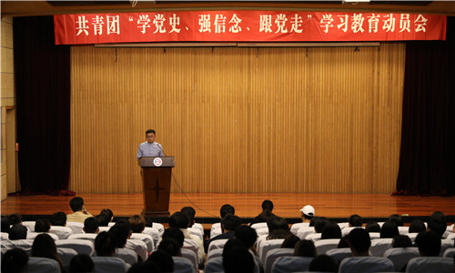 为深入贯彻落实习近平总书记在党史学习教育动员大会上的讲话精神,根据学院《关于开展党史学习教育的通知》要求,4月26日晚,黄色直播 团委在报告厅召开共青团“学党史、强信念、跟党走”学习教育动员会,各系团总支书记、各班团支书、学生干部代表近400人参加动员会,团委书记黄晓帆主持动员会并讲授党史主题团课。