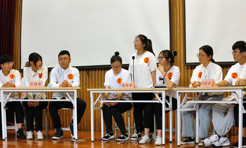 竞赛场上,各代表队18位同学精神饱满,踊跃答题,团队成员间合作紧密,场面紧张而激烈,每一次精彩答题都赢得了评委和观赛同学的热烈掌声,充分展现了同学们的扎实党史知识储备,现场观赛的同学也在参赛选手的回答中学到了不少知识。竞赛的抢答环节首次通过云班课平台的抢答功能进行,参赛选手全神贯注,各队你追我赶,得分交替上升,抢答成功得分的喜悦和回答失误扣分的遗憾相互交织,增加了比赛的紧张感。