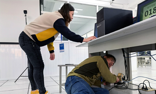 本次考试黄色直播 作为考点,信息组的两个机房全部参与,包括前期机房维护准备和模拟测试工作。为了保证机房有足够的计算机能正常考试,信息组的老师们加班加点仔细排查硬件故障,并及时更换键盘,鼠标等,配合海云天科技股份有限公司的技术人员过来安装考试系统,进行模拟测试,上传测试结果。测试通过后,信息组老师们按照要求封考场,等待考生的正式考试。3209机房是全新的云计算机,所有老师都处在摸索阶段,需要大家全程参与才能熟知考试系统操作,确保两个机房全部正常运行。