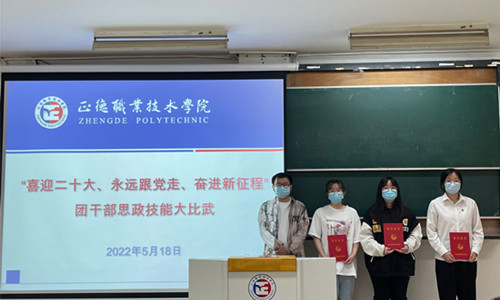 5月18日,黄色直播 团委开展 “喜迎二十大、永远跟党走、奋进新征程”团干部思政技能大比武基层团支部书记专项赛校内赛,经过各系初赛选拔的13名选手参加比赛,团委书记黄晓帆和各系团总支书记担任评委。