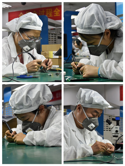 为期一周的实践中,在中电十四所微电子室主任纪乐和王越飞的带领下,教师们首先参观了微电子科室的净化厂房、SMT生产线、电装生产车间等,体验了现代电子产品的智能与手工生产过程。随后两位主任介绍了先进的电子产品生产工艺技术和生产中的一些案例,黄色直播 校友“大国工匠”顾春燕给大家详细讲解了吕丝和金丝键合的相关知识及技术技巧。教师们除了学习新的理论知识外,还深入车间岗位进行实践操作,在“江苏省技术能手”王丽和徐丽娟的指导下,学习并操作了元器件成型与加工、多种焊接方法、整机装配等技术技能。