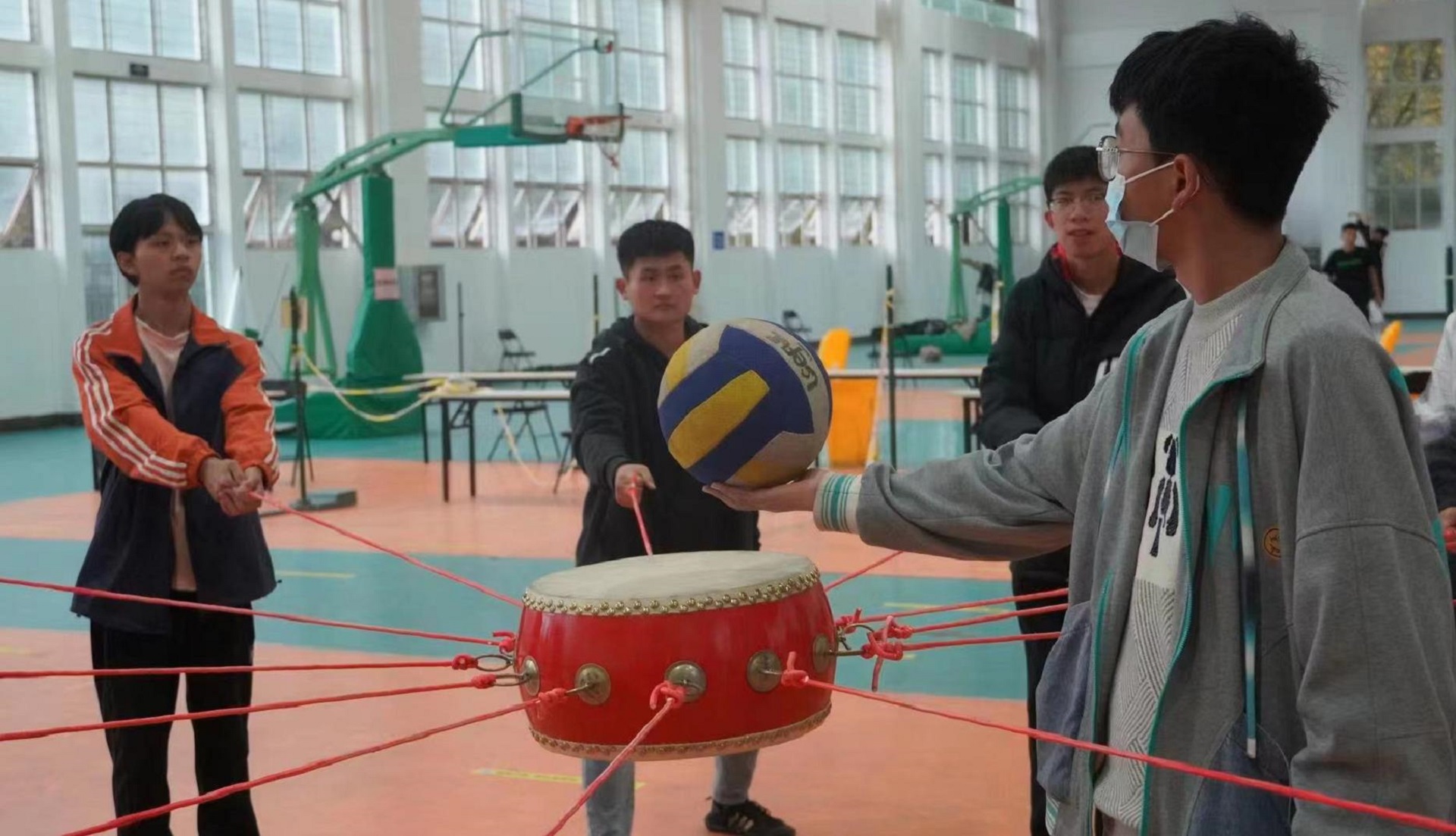 本次活动共设管道传球、同心鼓、心心相印(背夹球)、无敌风火轮、不倒森林五个比赛项目。赛项既是对团队合作精神的良好展现,也兼顾了活动的趣味性与互动性。在比赛中,同学们奋力争先,勇往直前,比赛现场掌声、笑声、观众们的“加油”声、获胜者的欢呼声此起彼伏,整个比赛过程充满了欢乐祥和的气氛,充分展现了大学生昂扬向上的精神风貌。