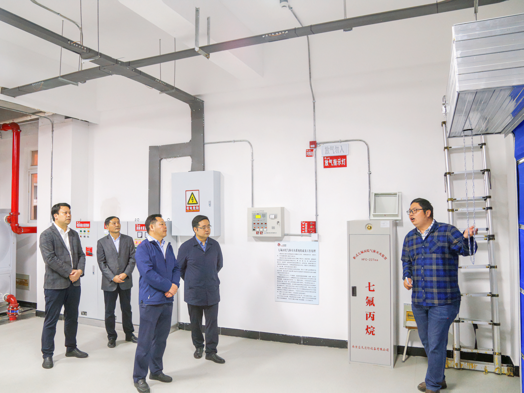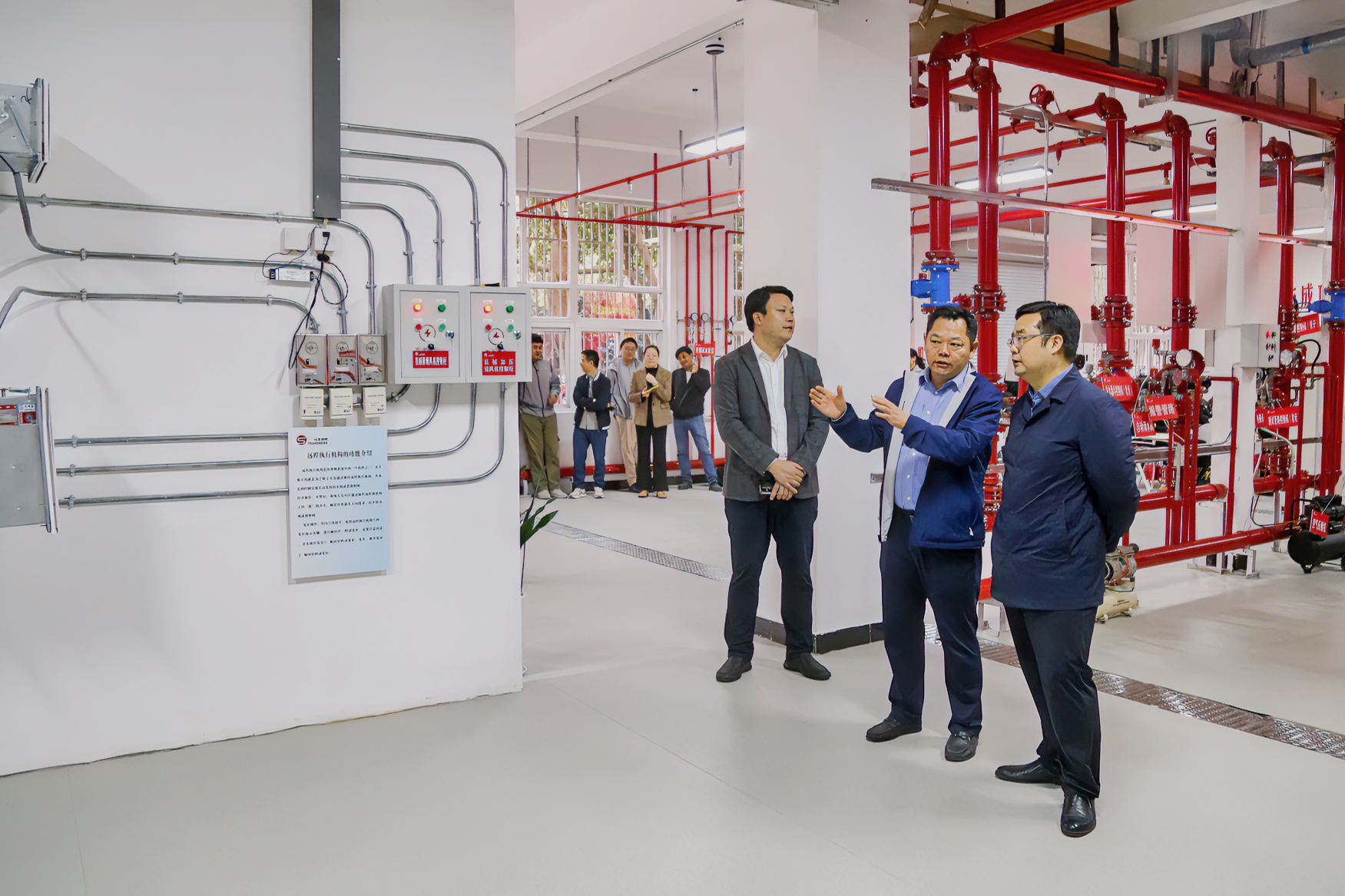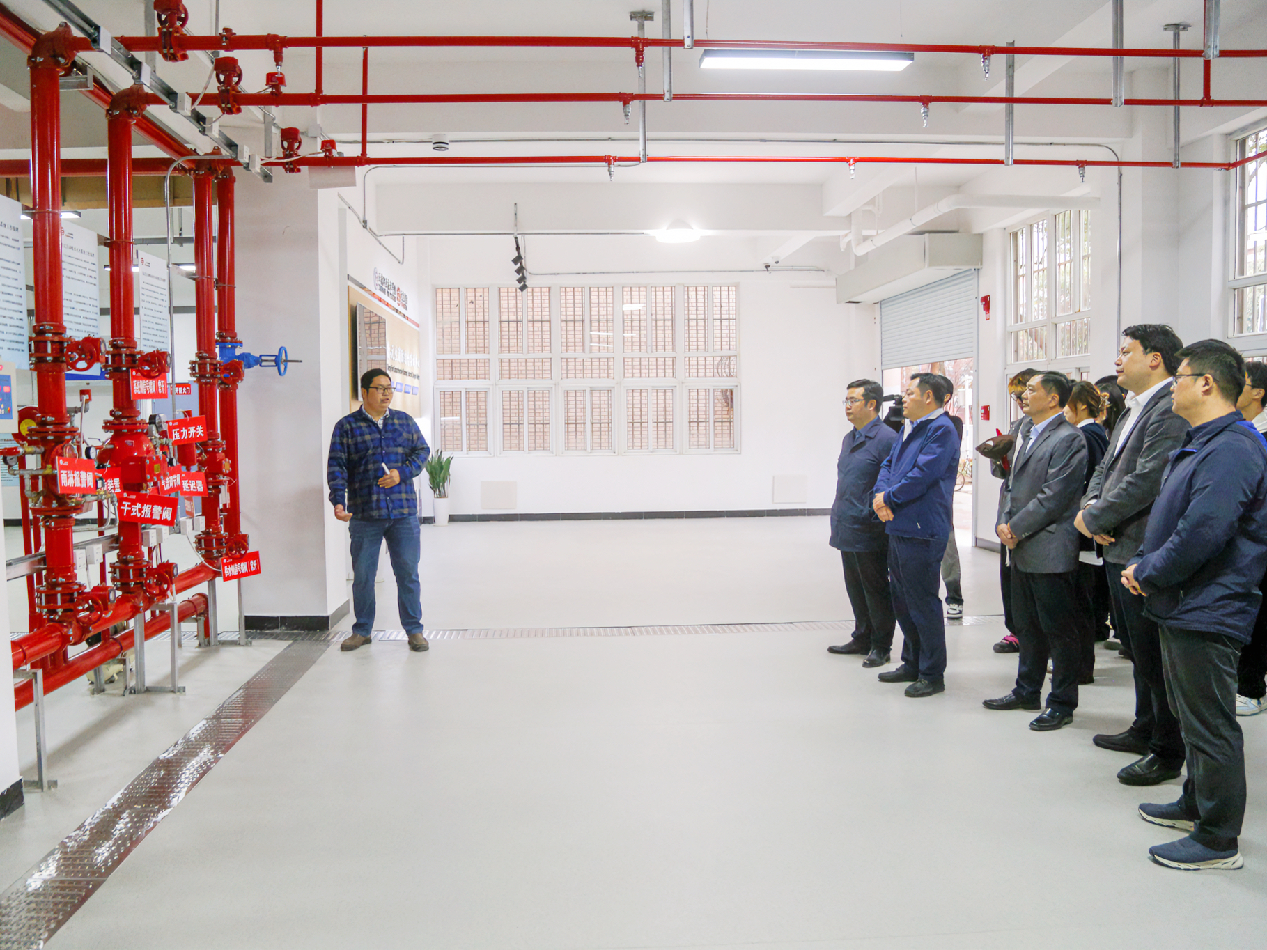 与会领导、嘉宾、师生一起参观了“正德-元生”消防综合实训中心。该中心占地面积约400平方米,配备了消防设施设备100余套,涵盖消防电系统、消防水系统、消防风系统,符合国家消防专业实操考核的设施要求,集理论教学、实践实训、培训演练、示范展示为一体,有望成为南京市中小学生消防安全教育实践基地。