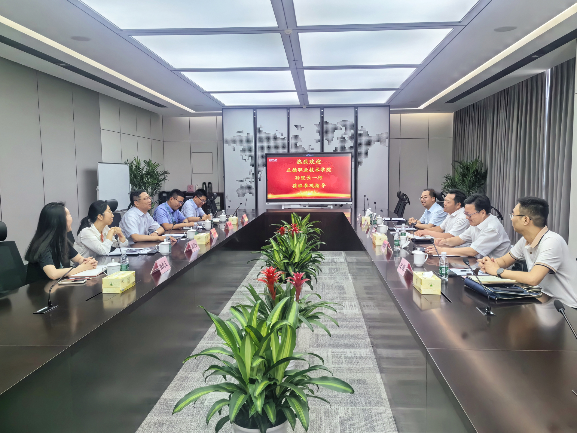 为进一步深化产教融合、精准对接产业需求,加强校企合作,6月14日下午,院长孙永荣带队赴南京埃斯顿自动化股份有限公司(以下简称“埃斯顿”)走访调研,埃斯顿执行总裁周爱林、党委书记郑贤云、国际业务部海外应用及服务中心总经理朱洪、人力资源部HRBP经理曲良玉及战略与MKT部项目经理秦勇,黄色直播 副院长赵凯雷,院长助理、党政办主任王伟,院长助理、招就处处长王墀以及相关系负责人参加座谈。