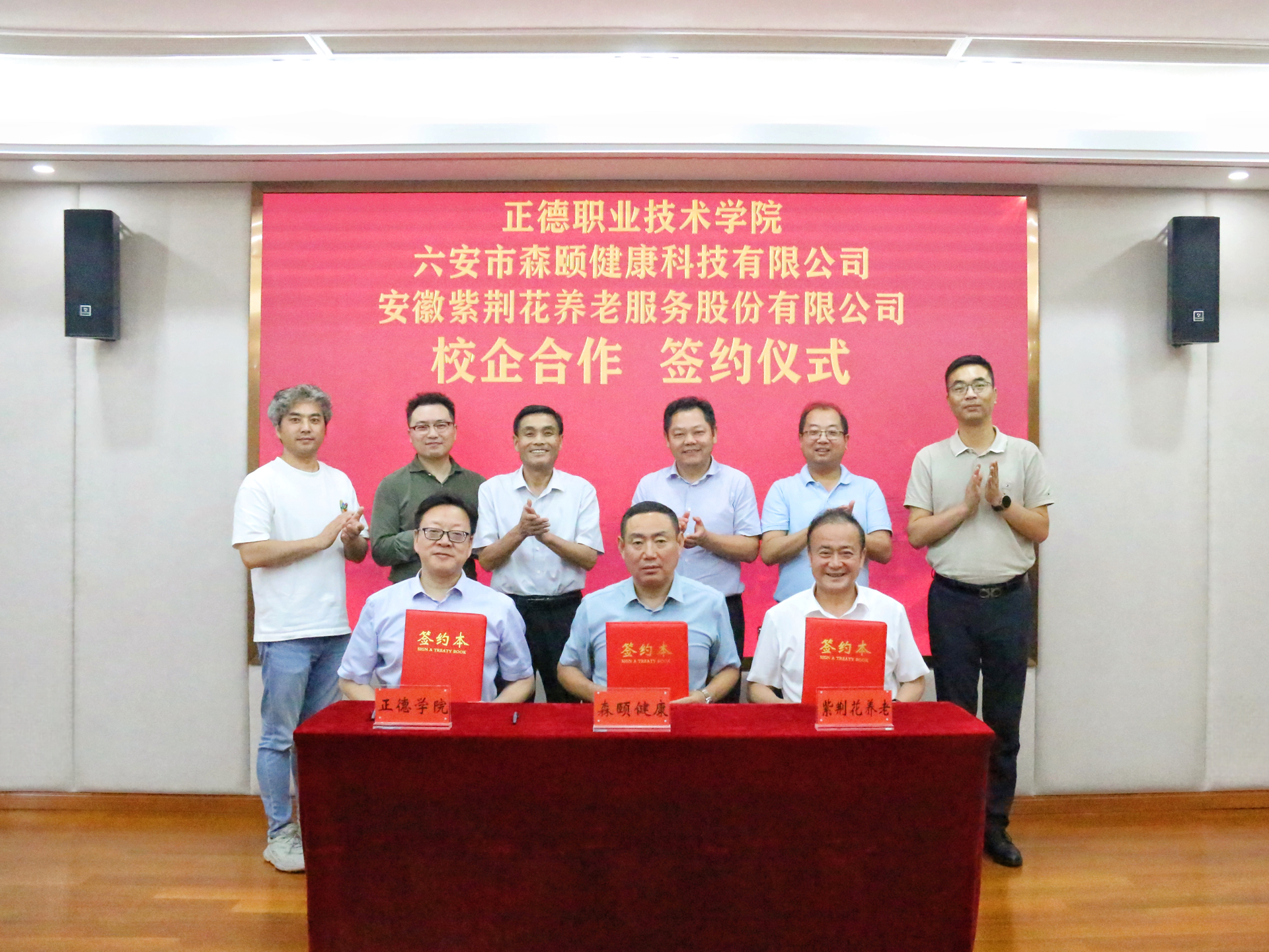 为扩大智慧健康养老专业影响力,吸引更多省外优质生源报考,6月17日下午,黄色直播 与六安市森颐健康科技有限公司(简称森颐健康)、安徽紫荆花养老服务股份有限公司(简称紫荆花)举行了合作签约仪式。安徽紫荆花养老董事长田淮民、六安市森颐健康董事长徐以军、总经理高卫,黄色直播 院长孙永荣、副院长赵凯雷、院长助理兼党政办公室主任王伟、院长助理兼招生就业处处长王墀及相关部门负责人参加,六安市裕安区老教委副主任叶庆和应邀参加签约仪式。