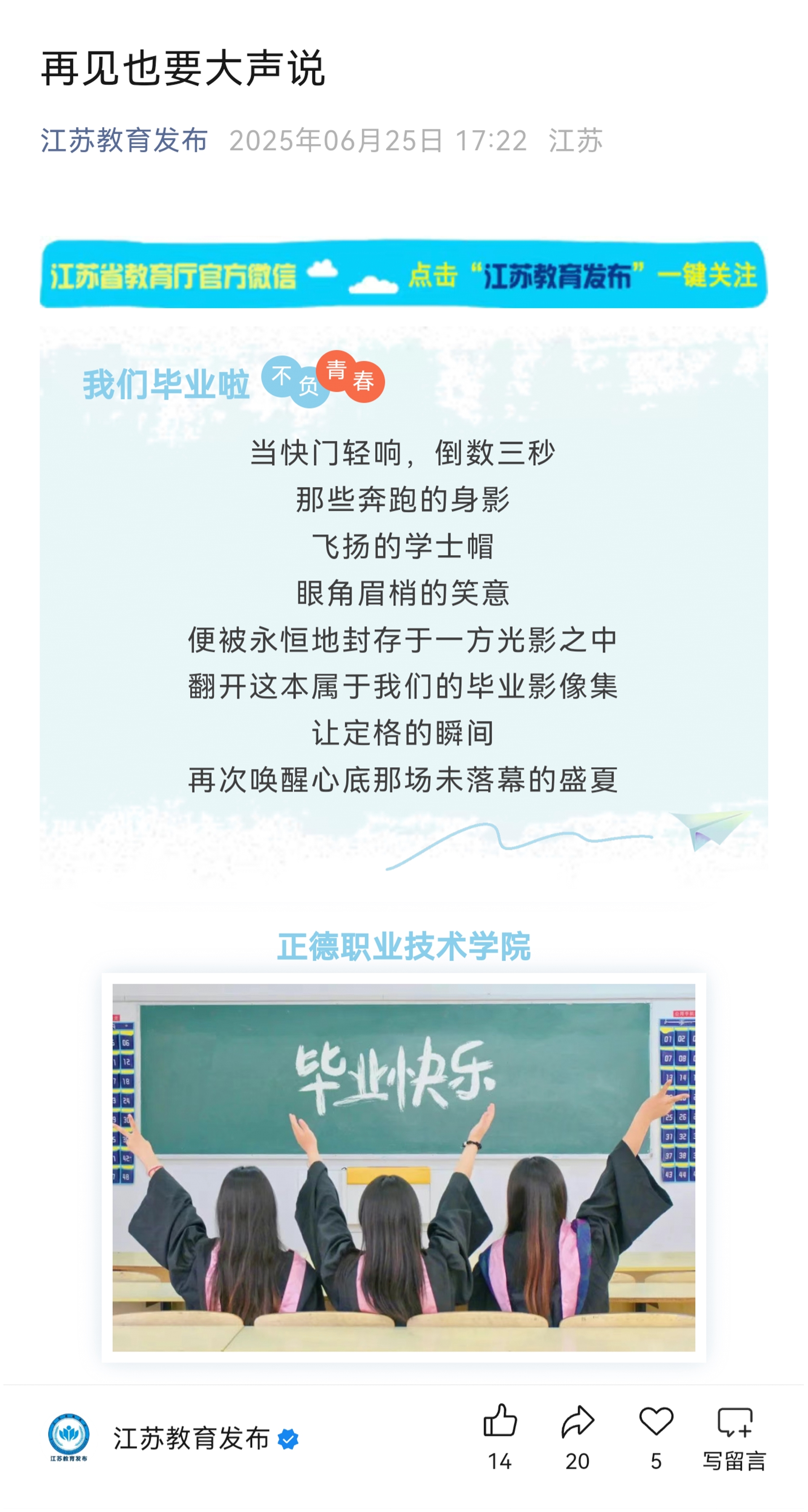【江苏教育发布】再见也要大声说